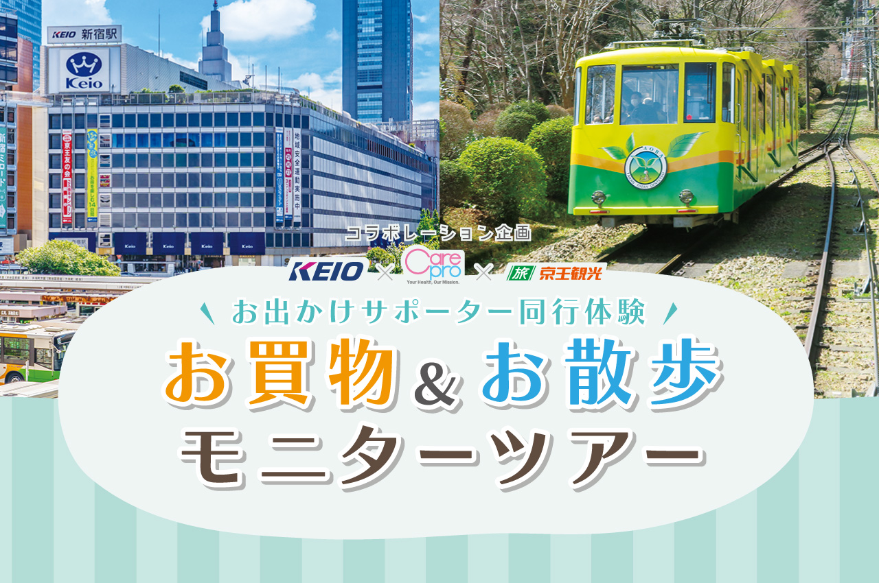 ケアプロ株式会社(以下「ケアプロ」)は、京王電鉄株式会社(以下「京王電鉄」)、京王観光株式会社(以下「京王観光」)、ReGACY Innovation Group株式会社(以下「ReGACY」)と共同で、外出支援サービス「ドコケア」のサポーターと一緒に座席指定列車「京王ライナー」にご乗車いただき、京王百貨店でのお買い物等を楽しむモニターツアーと、「Mt.TAKAO号」にご乗車いただき、髙尾山薬王院への参拝や高尾山口駅前ホテル「タカオネ」での焚き火体験などを楽しむモニターツアーを企画いたしました。